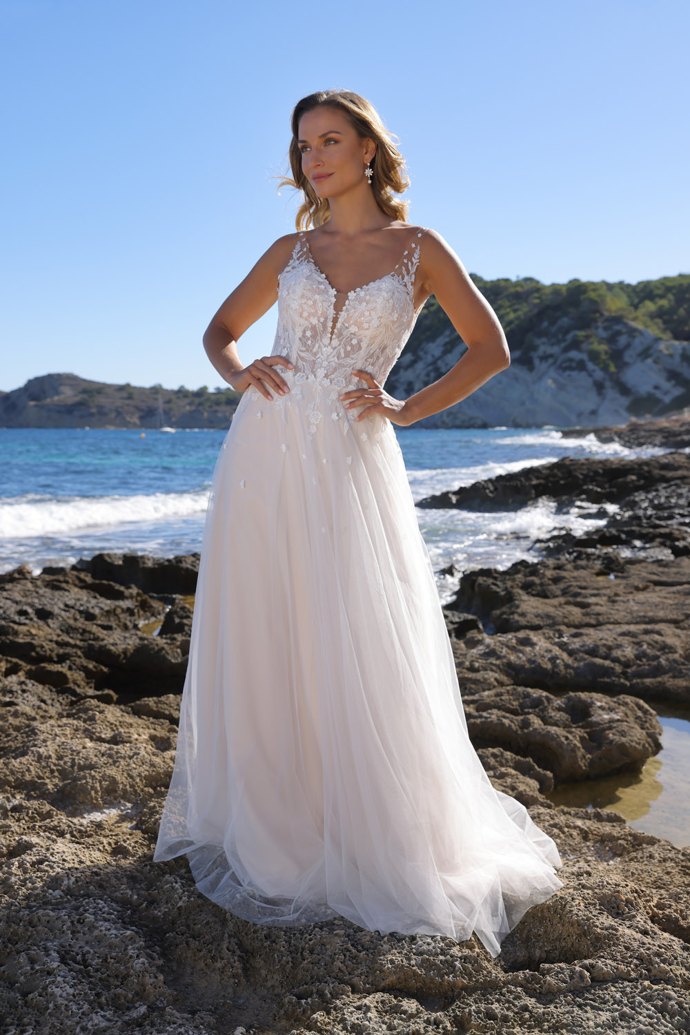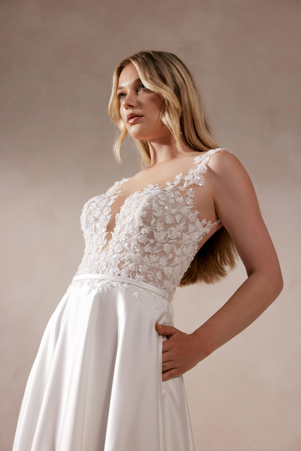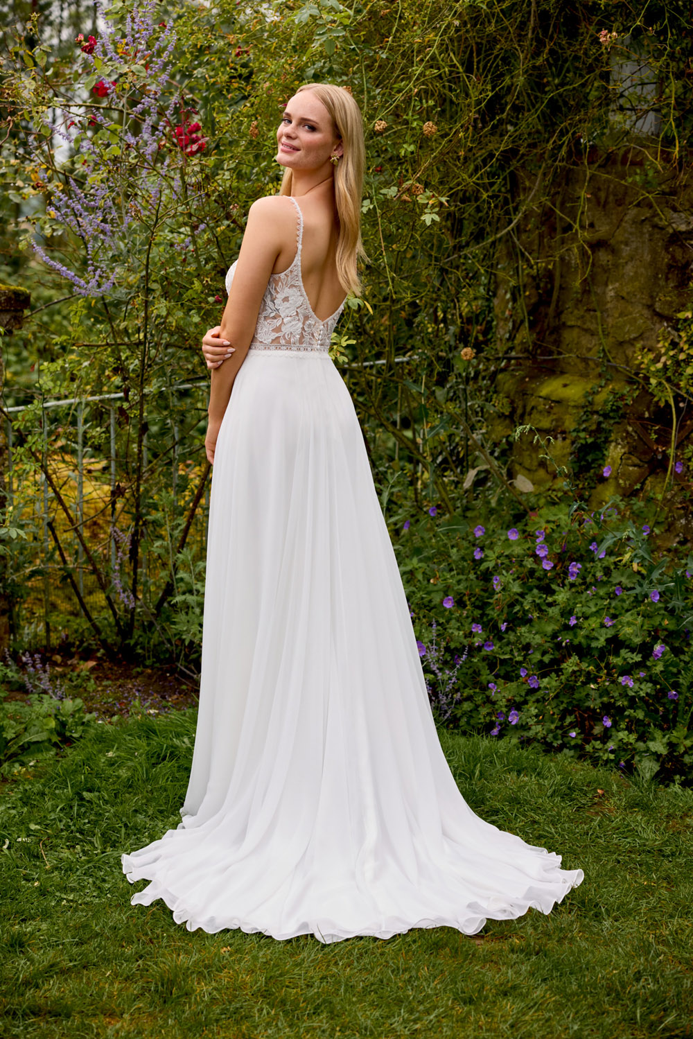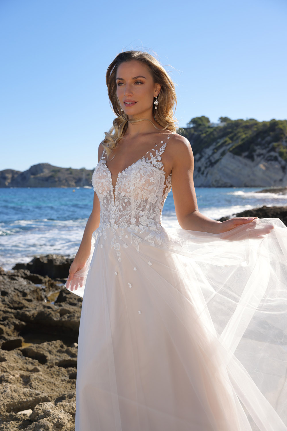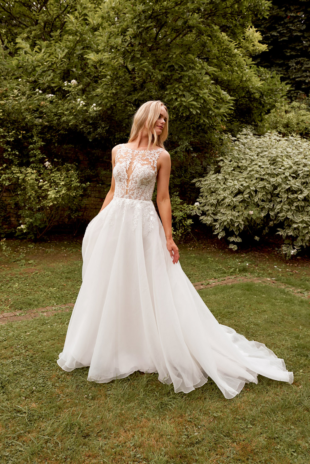 Die A-Linie erfreut sich als Schnitt bei Brautkleidern größter Beliebtheit. Es handelt sich um eine klassische Silhouette, die am Oberkörper eng anliegt und ab der Taille nach unten hin ausgestellt ist, ähnlich dem Buchstaben „A“. Diese Schnittform schmeichelt den meisten Körpertypen, indem sie die Taille betont und geschickt die Hüften, sowie Oberschenkel umspielt.