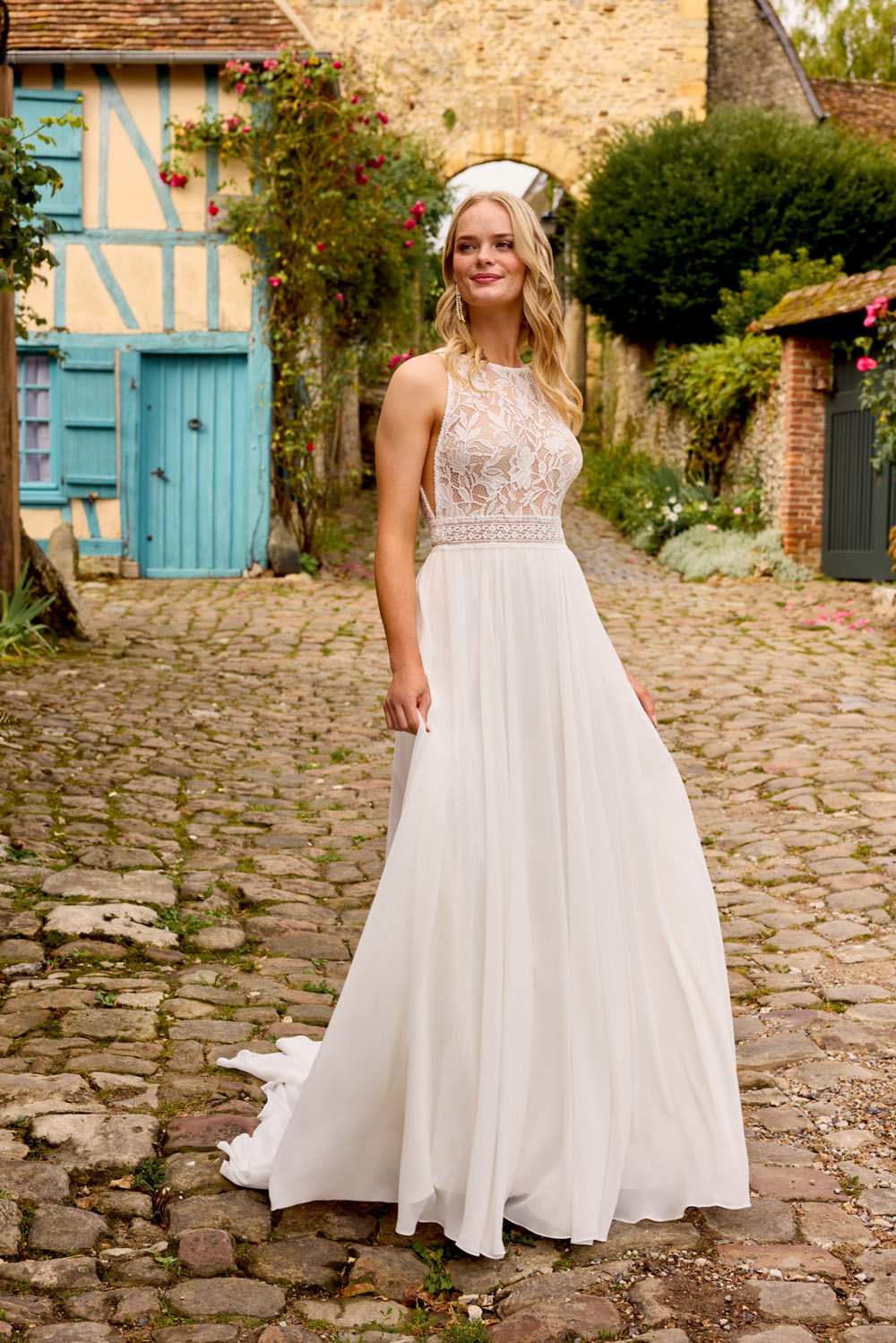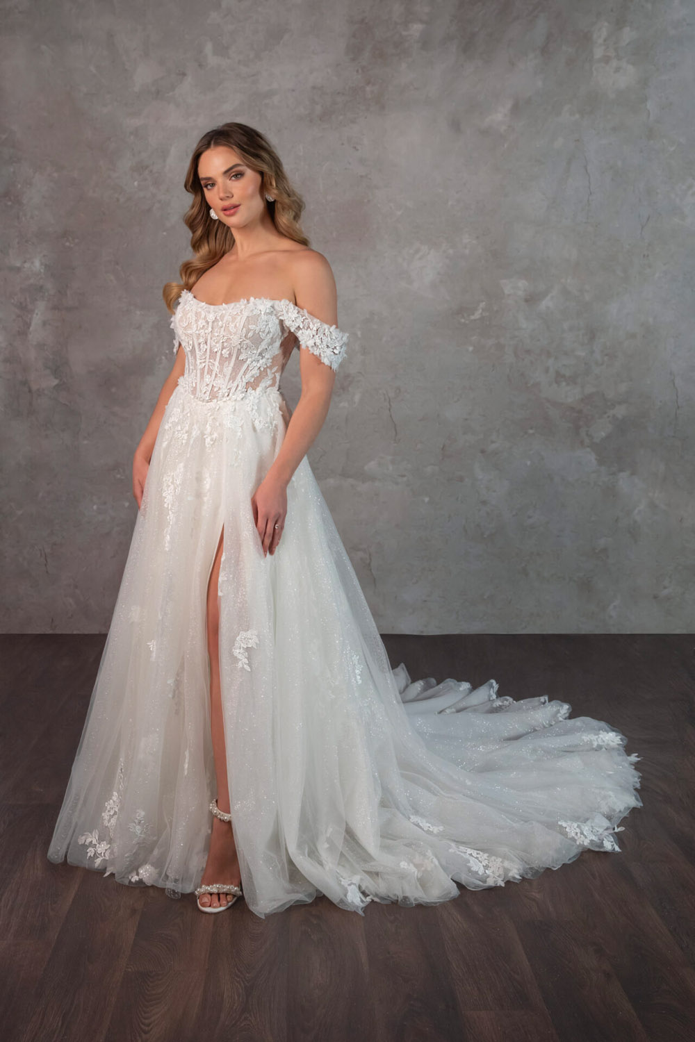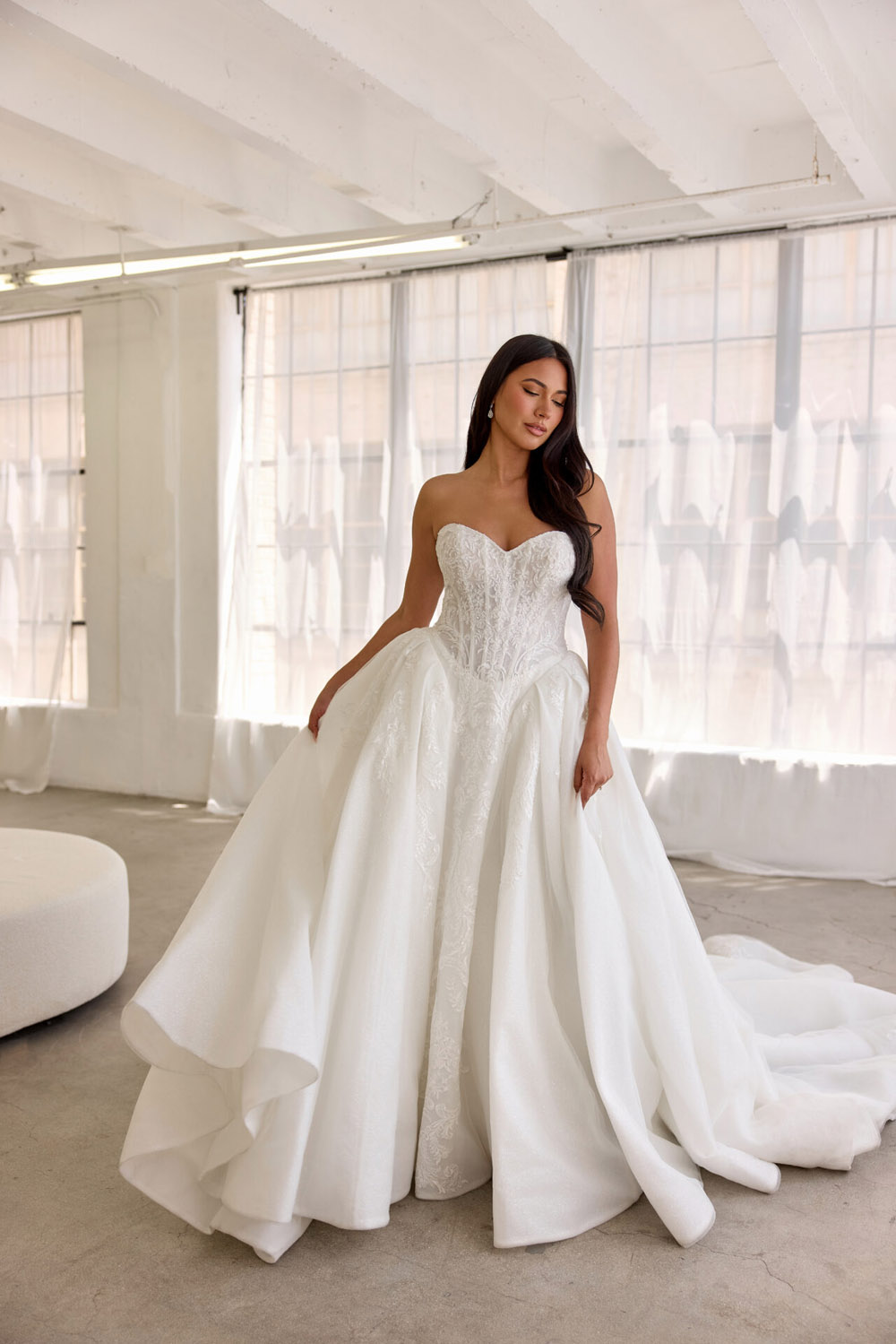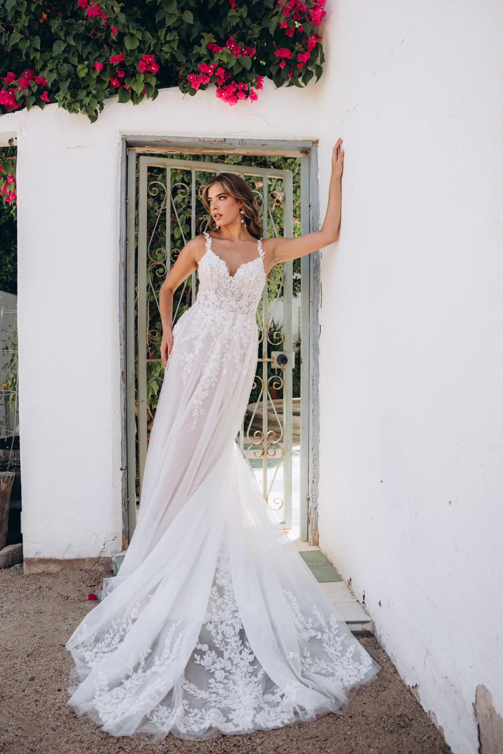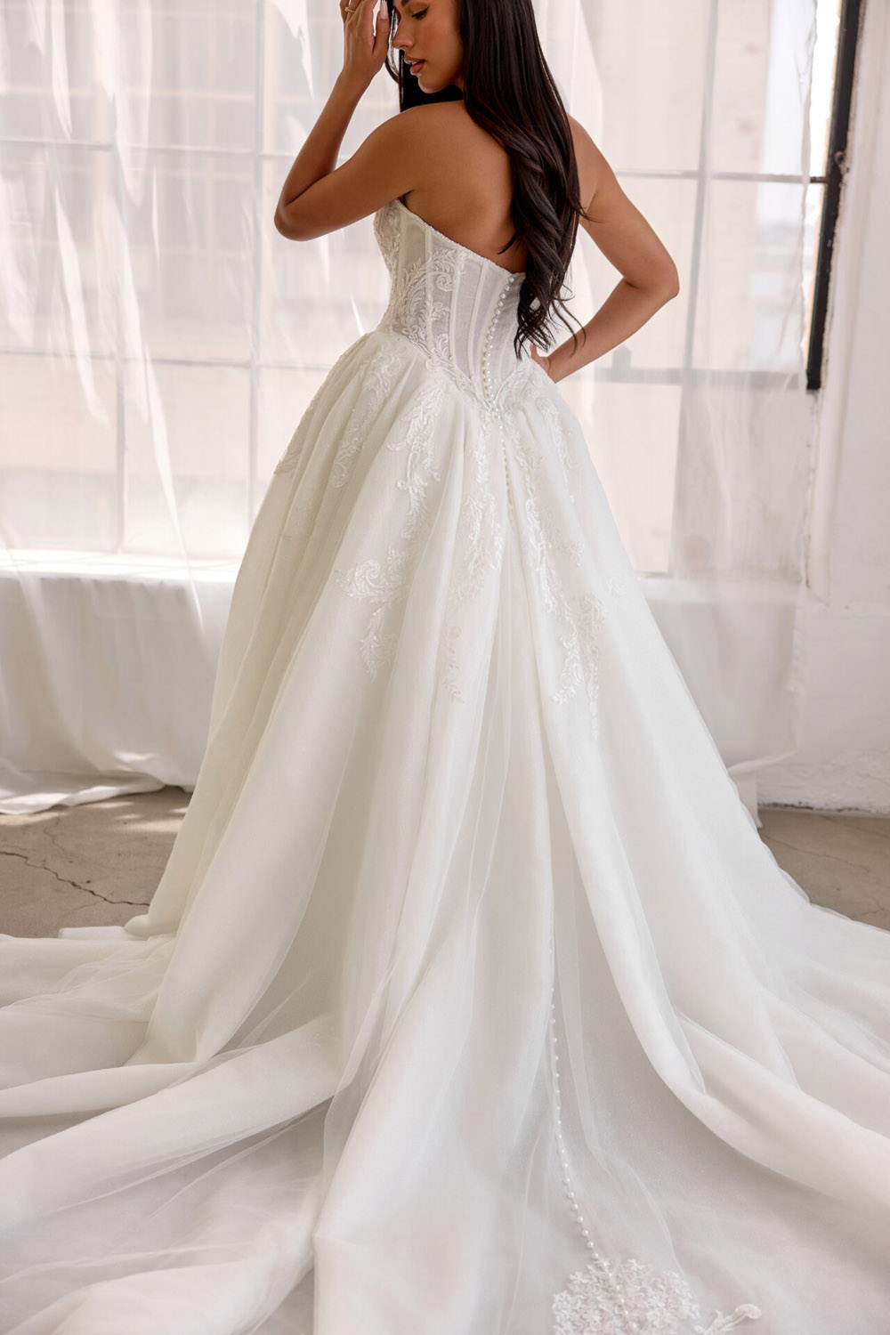 Die A-Linie erfreut sich als Schnitt bei Brautkleidern größter Beliebtheit. Es handelt sich um eine klassische Silhouette, die am Oberkörper eng anliegt und ab der Taille nach unten hin ausgestellt ist, ähnlich dem Buchstaben „A“. Diese Schnittform schmeichelt den meisten Körpertypen, indem sie die Taille betont und geschickt die Hüften, sowie Oberschenkel umspielt.