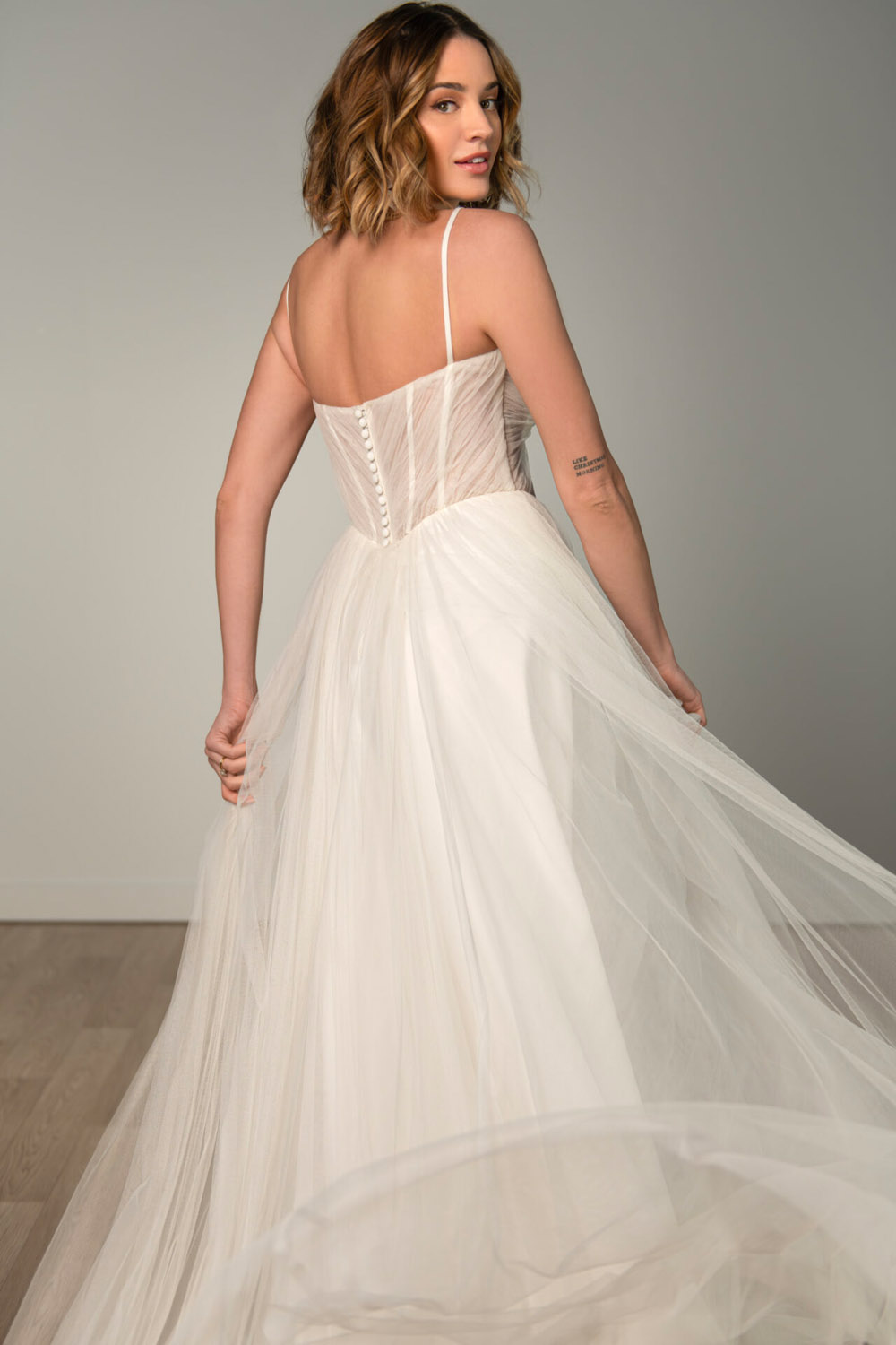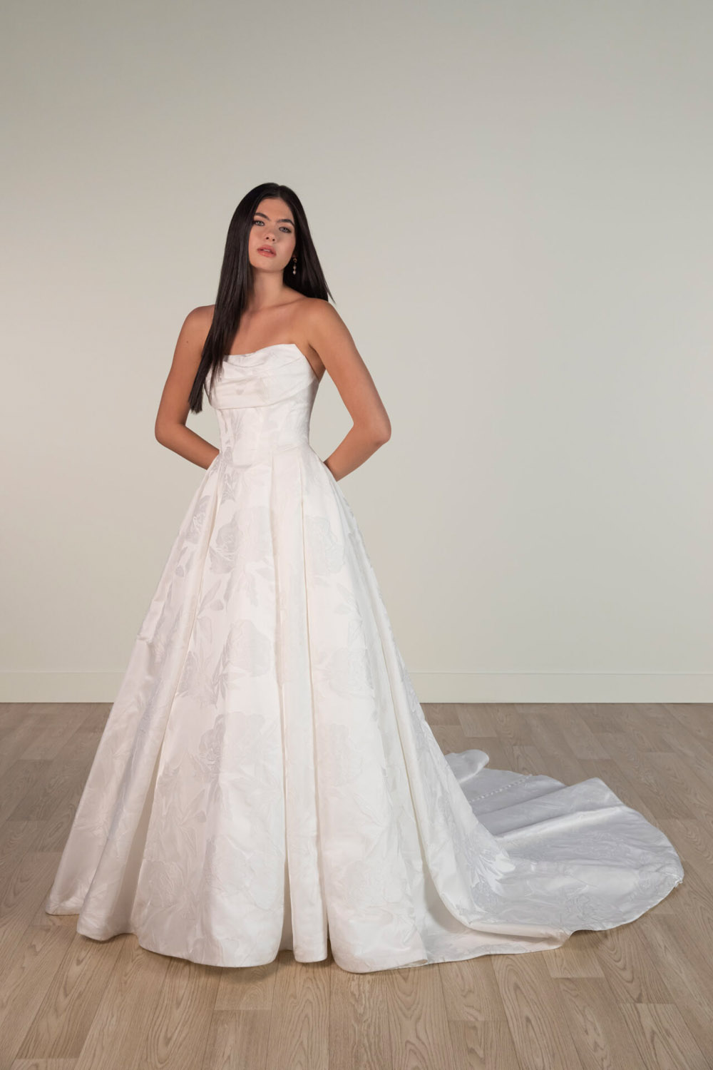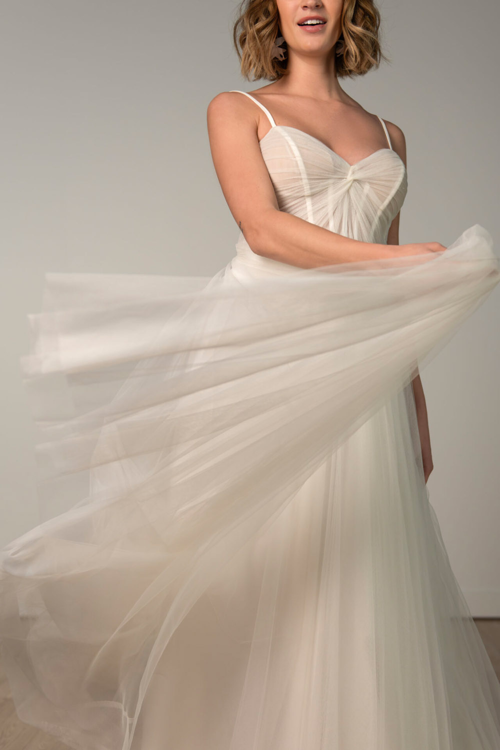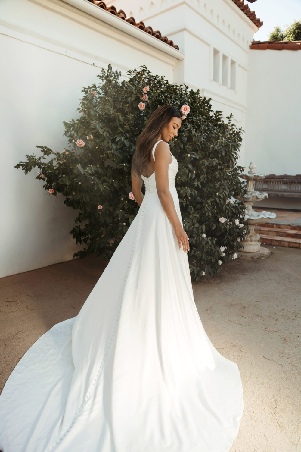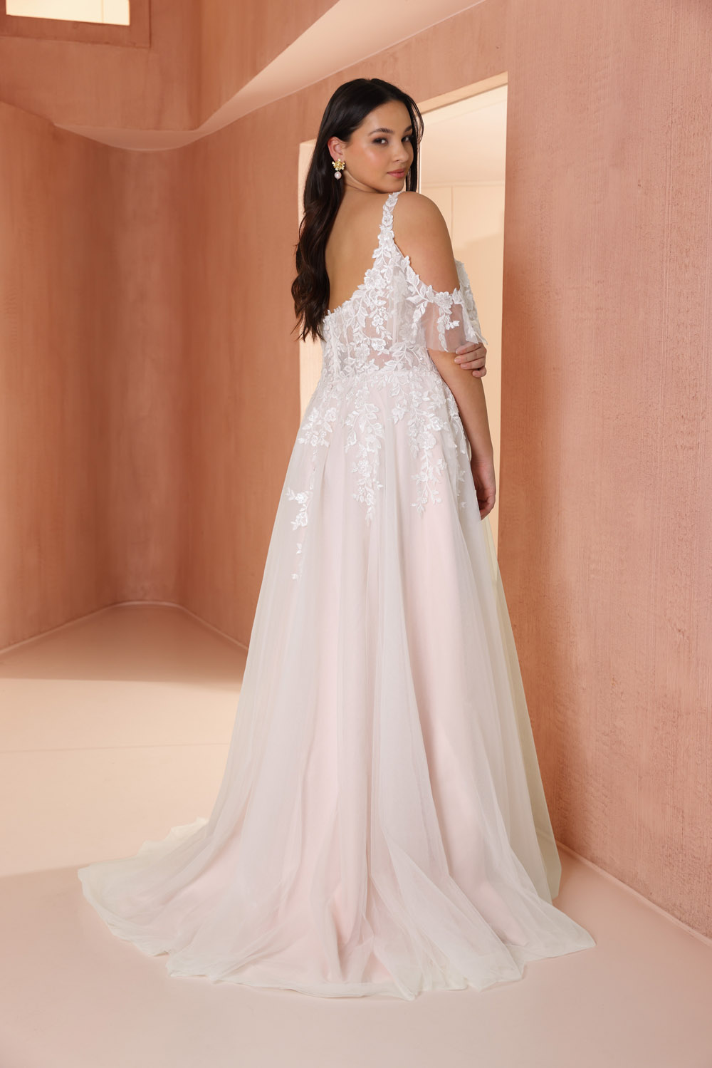 Die A-Linie erfreut sich als Schnitt bei Brautkleidern größter Beliebtheit. Es handelt sich um eine klassische Silhouette, die am Oberkörper eng anliegt und ab der Taille nach unten hin ausgestellt ist, ähnlich dem Buchstaben „A“. Diese Schnittform schmeichelt den meisten Körpertypen, indem sie die Taille betont und geschickt die Hüften, sowie Oberschenkel umspielt.
