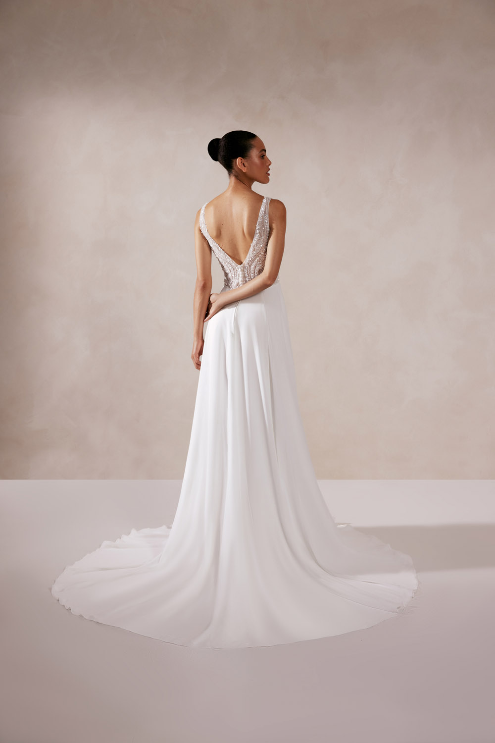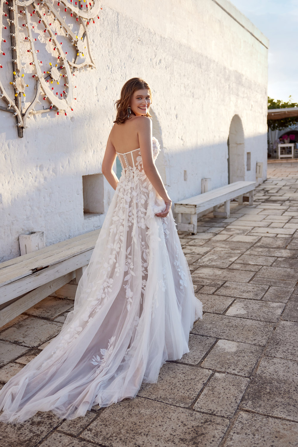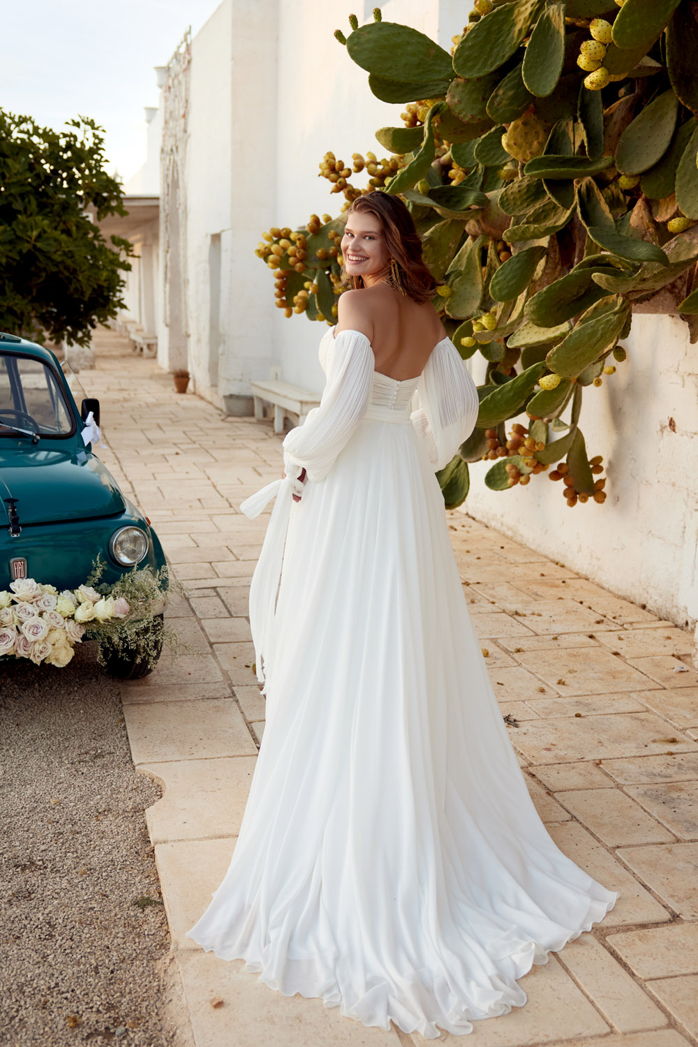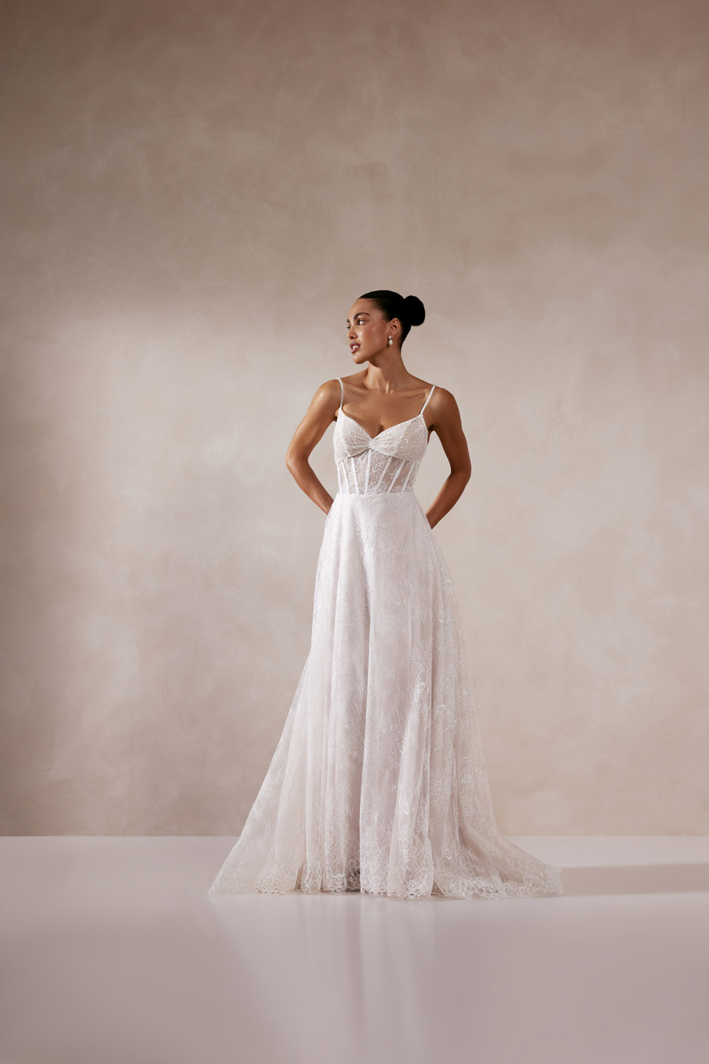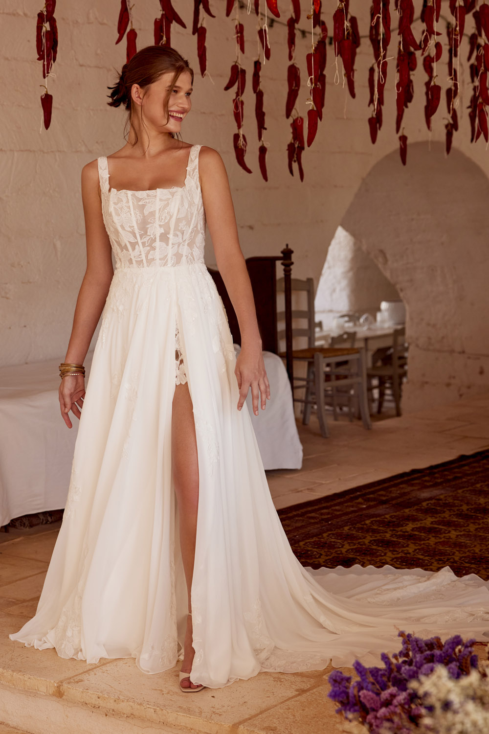 Die A-Linie erfreut sich als Schnitt bei Brautkleidern größter Beliebtheit. Es handelt sich um eine klassische Silhouette, die am Oberkörper eng anliegt und ab der Taille nach unten hin ausgestellt ist, ähnlich dem Buchstaben „A“. Diese Schnittform schmeichelt den meisten Körpertypen, indem sie die Taille betont und geschickt die Hüften, sowie Oberschenkel umspielt.